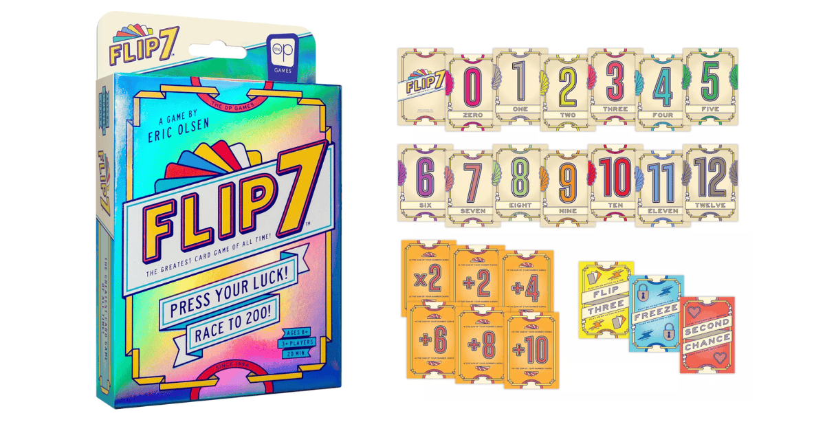 Flip 7 is a game like UNO, and games like UNO are always affordable, luckily. In this game, you should stay alert and try to avoid flipping the same number twice. The deck is made of multiples of each number, ranging from one card ‘1’, to twelve ‘12s’, plus extra action cards such as freeze, second chance, flip three, and so on, which add chaos and unpredictability. Although it has simple instructions to follow, the game can get very competitive.