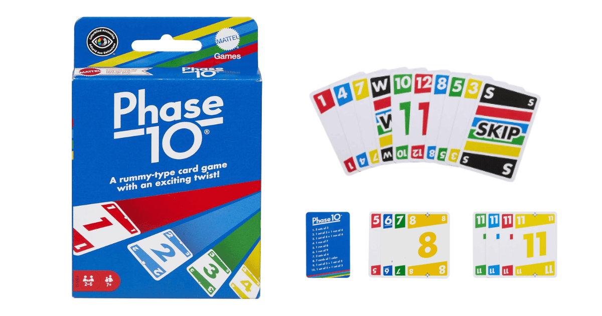 If we’re talking about rummy-style card games that always light up the mood and cost less than $10, Phase 10 should definitely be on the list. In this game, you compete in 10 different phases, which could be collecting sets or other specific card combinations, and you can’t move to the next round without completing the previous. Of course, the rounds become increasingly challenging along the way, which is one of the key elements that make the game fun from start to finish.